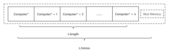 listsize指示有序表当前分配的存储空间大小,一旦因插入数据元素(Computer)而空间不足时,可进行再分配;