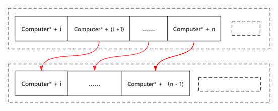 - 如果库存数量恰好等于待出库数量,那么此时这种型号的电脑应从仓库中“剔除”。具体操作是,找到该数据元素的地址,将该地址及以后的地址全部前移一位。最后,更新L.length参数。