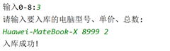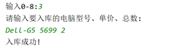 入库要考虑两种情况,第一种情况,仓库中已经有和待入库电脑相同型号的数据元素,那么需要先比较价格是否一致(不一致拒绝用户的入库操作),然后更改仓库中此种电脑数据元素的数量值。