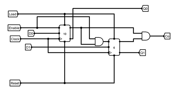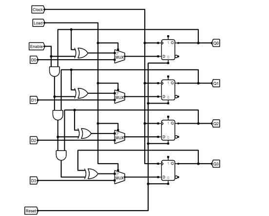 这里设计了一个带有同步置数、异步清零功能的4位同步递增计数器。