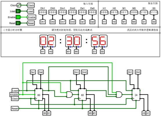 (3) 用 Logisim 画图,并进行仿真。要求能看到正确的时、分、秒信息。